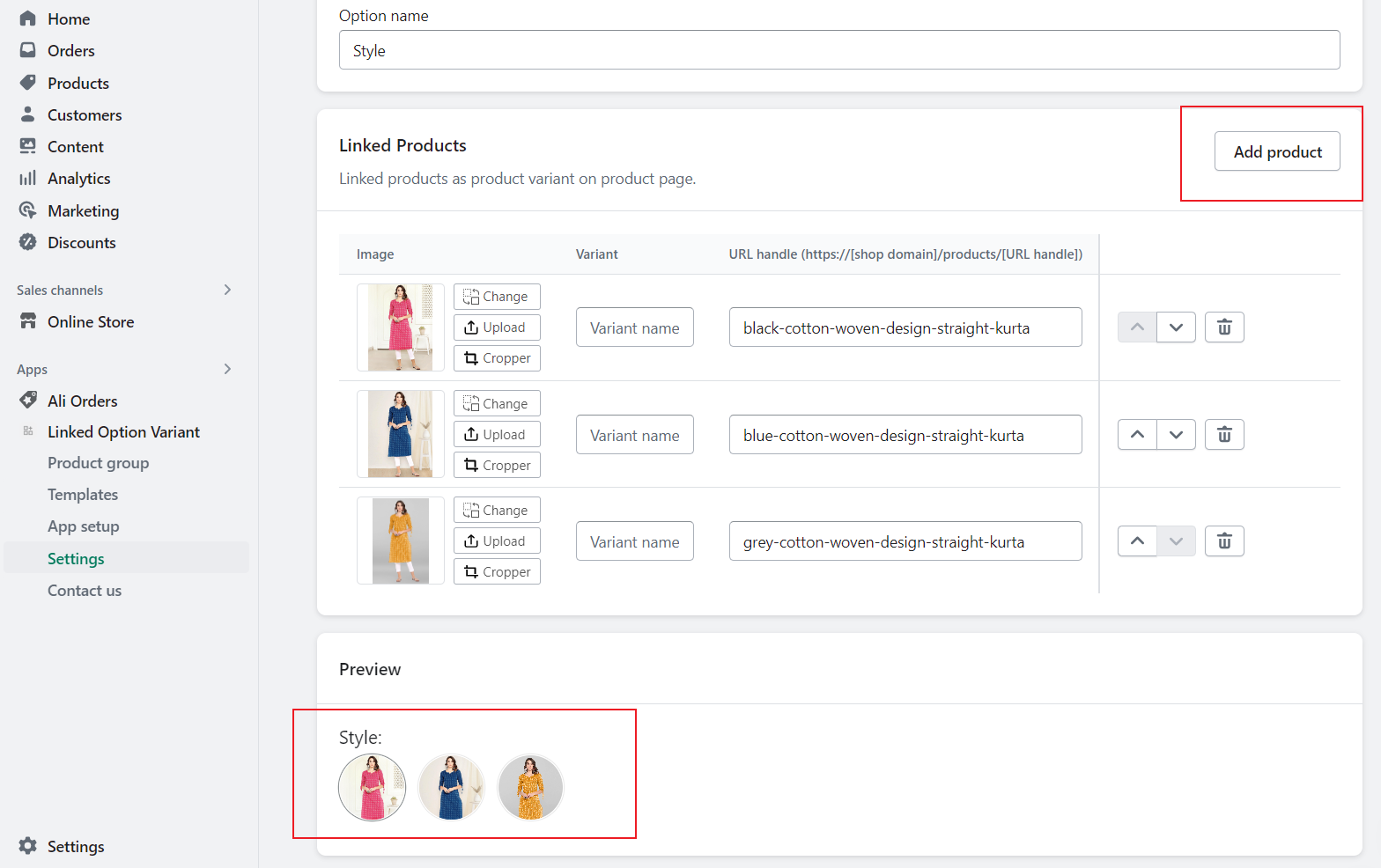 Then, click the “**Create group**” button, by adding products, you can preview linked options.