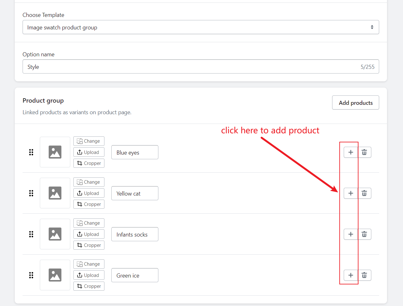 <figure><img src="https://433905945-files.gitbook.io/~/files/v0/b/gitbook-x-prod.appspot.com/o/spaces%2FmBMA3cQD9HDEvzfvR1m9%2Fuploads%2FeDDrr9LrMBHukTcAAwm5%2Fimage.png?alt=media&#x26;token=a545bea4-d33d-43e3-8204-9c025f8fbf1a" alt=""><figcaption><p>Add product for duplicate group</p></figcaption></figure>