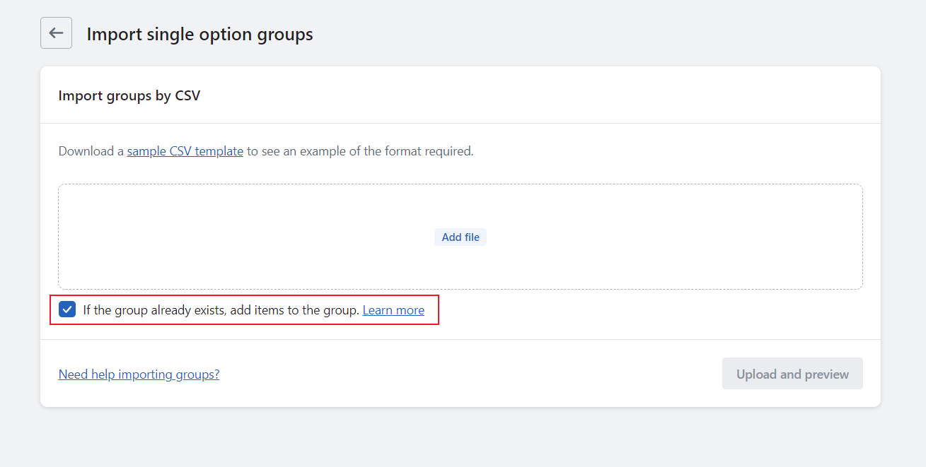 When you select Import group, you can import groups that already exist in the system. You only need to select "If the group already exists, add items to the group".